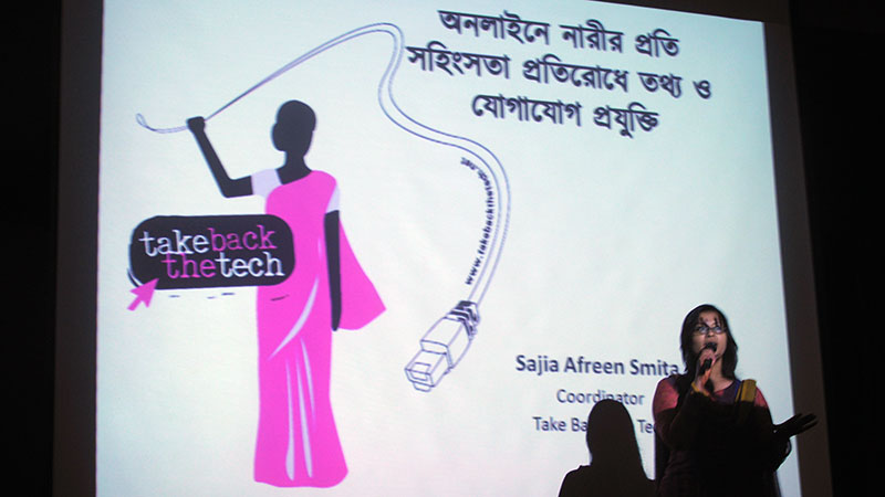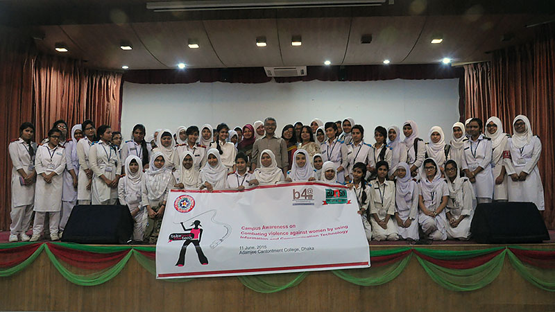 On 11 June, 2015, Take Back the Tech Bangladesh team visited Adamjee Cantontment College, Dhaka for a campus awareness on combating violence against women by using information and communication technology (ICT). This was the largest gathering in any TBTT programme in Bangladesh. Around 500 students participated in this event. Teachers of Adamjee Cantontment College were also present. The programme was organized by ACC ICT Club and supported by Bytes for all Bangladesh and Bangladesh Open Source Network (BdOSN).